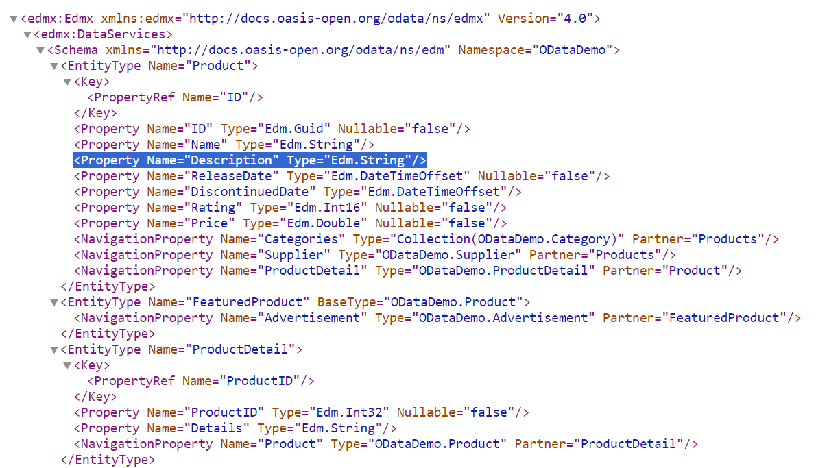 In our demonstration, we will be using the OData collection for “Products” from our OData service. As per the OData definition, we will use “Product” as External Name and “Products ” as External Collection Name.